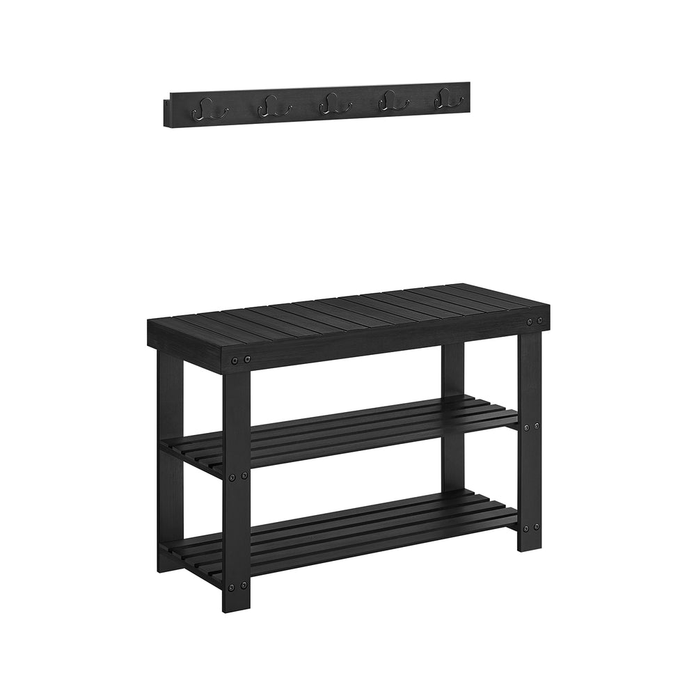 Coat Rack and 3-Tier Bamboo Shoe Bench Set Ink Black