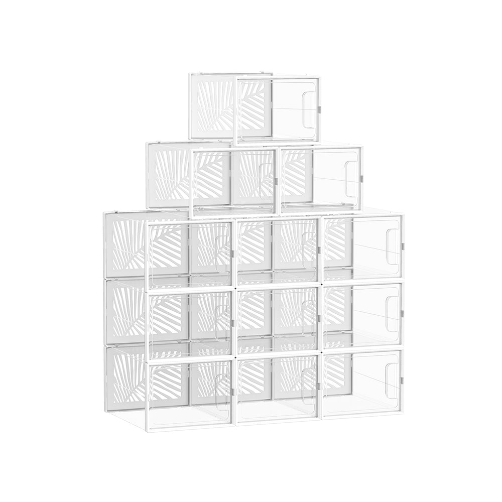 Set of 12 Stackable Shoe Boxes Transparent and White
