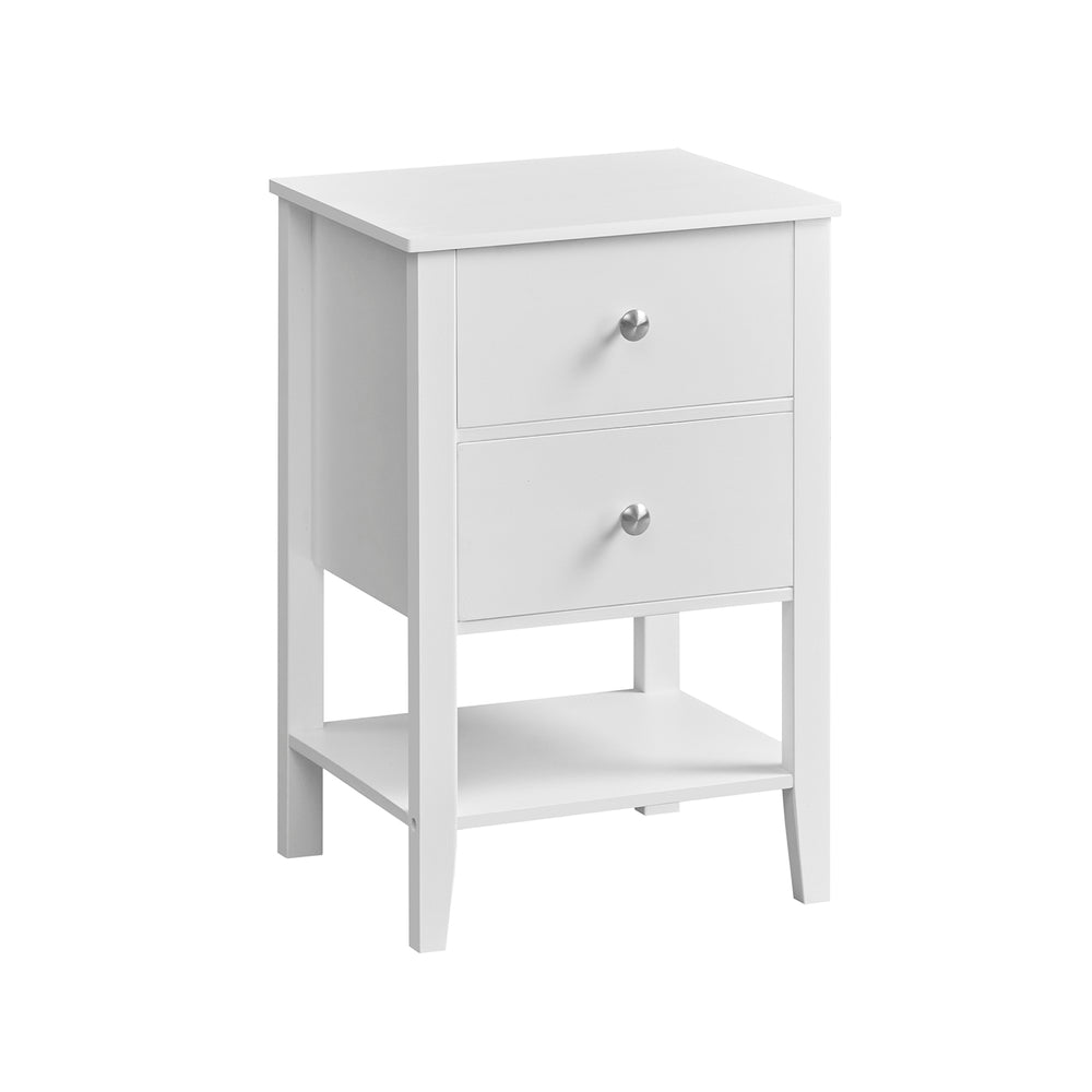 Bamboo Bedside Table with 2 Drawers Cloud White