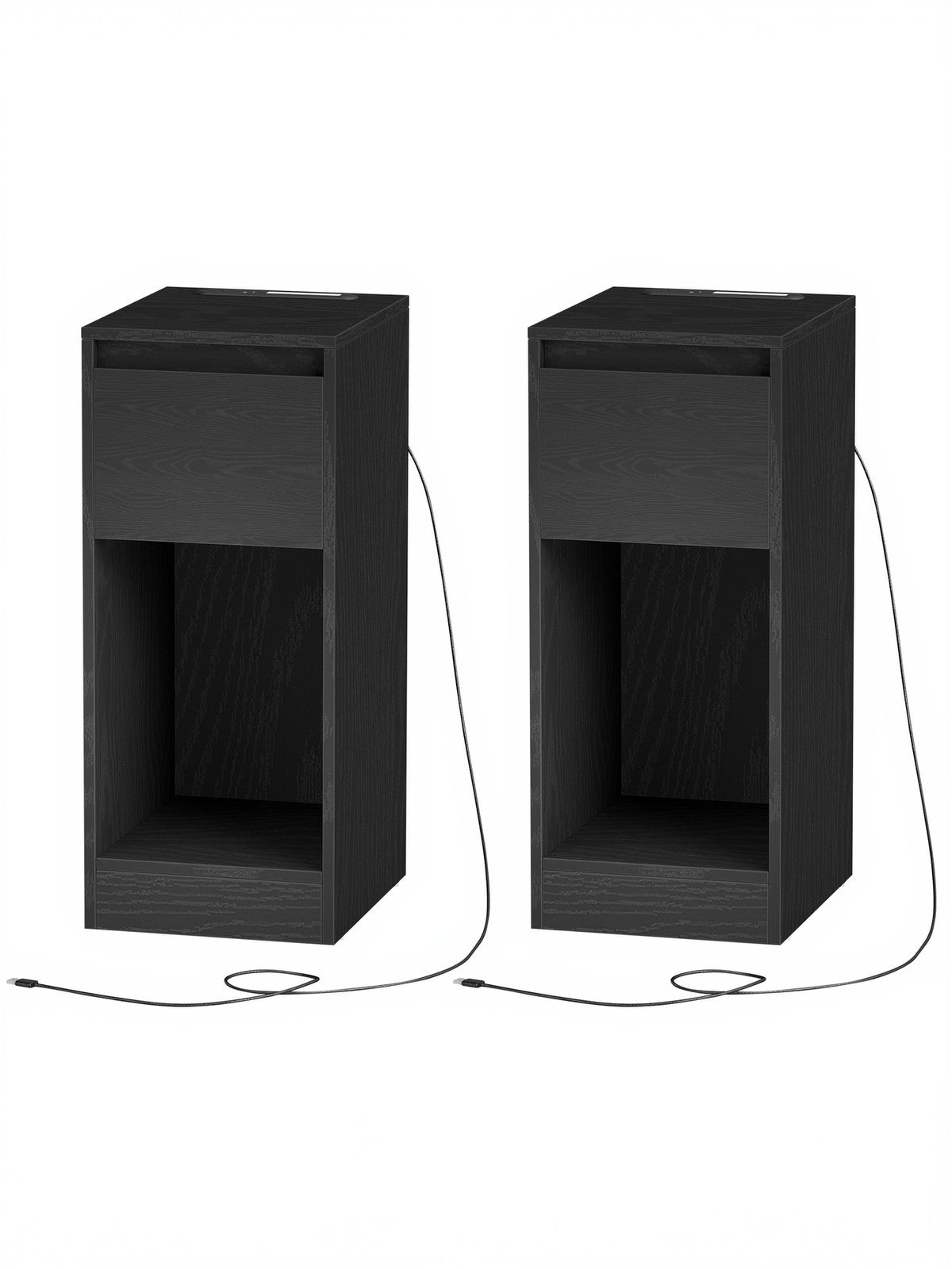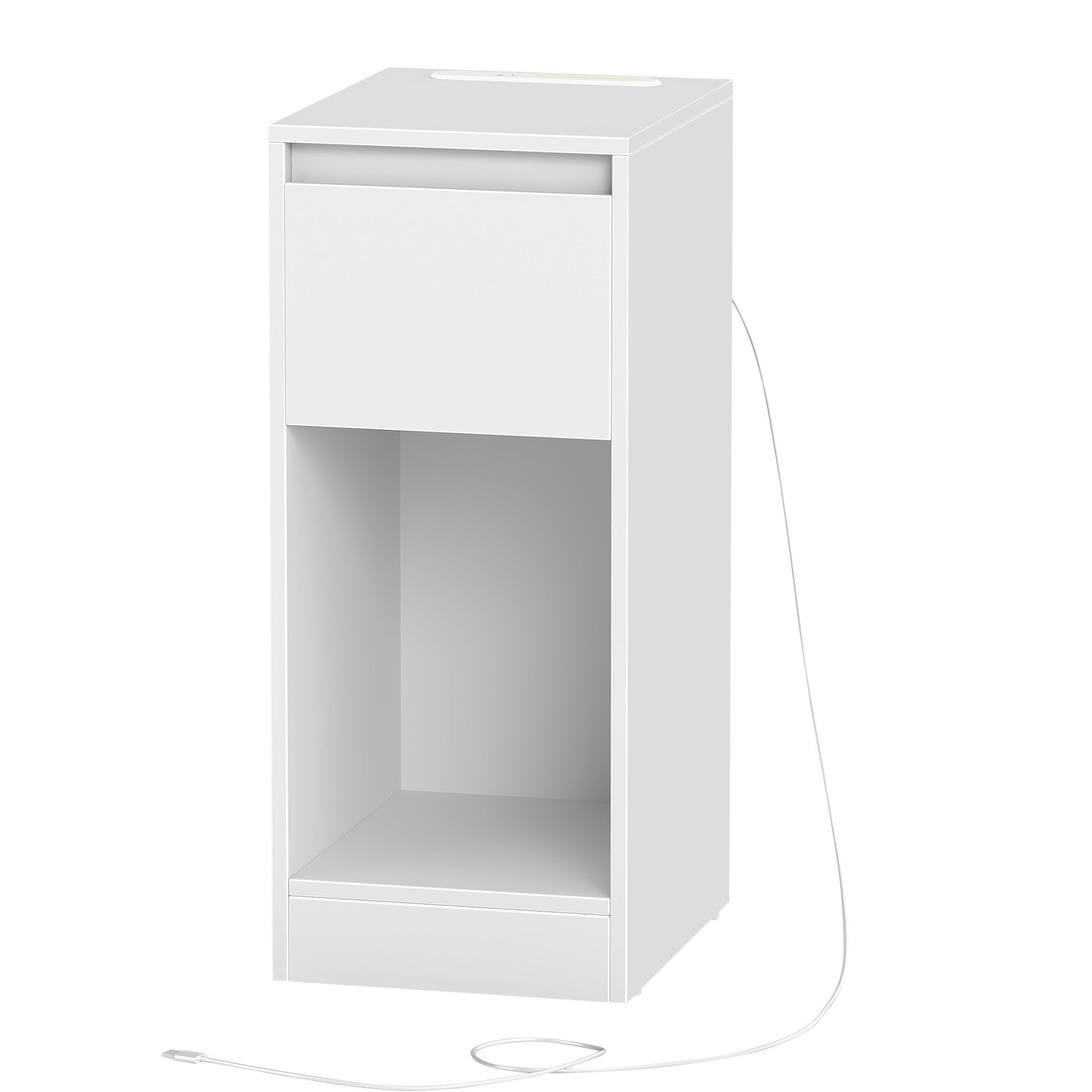 VASAGLE Slim bedside table with charging station LED light and storage drawer