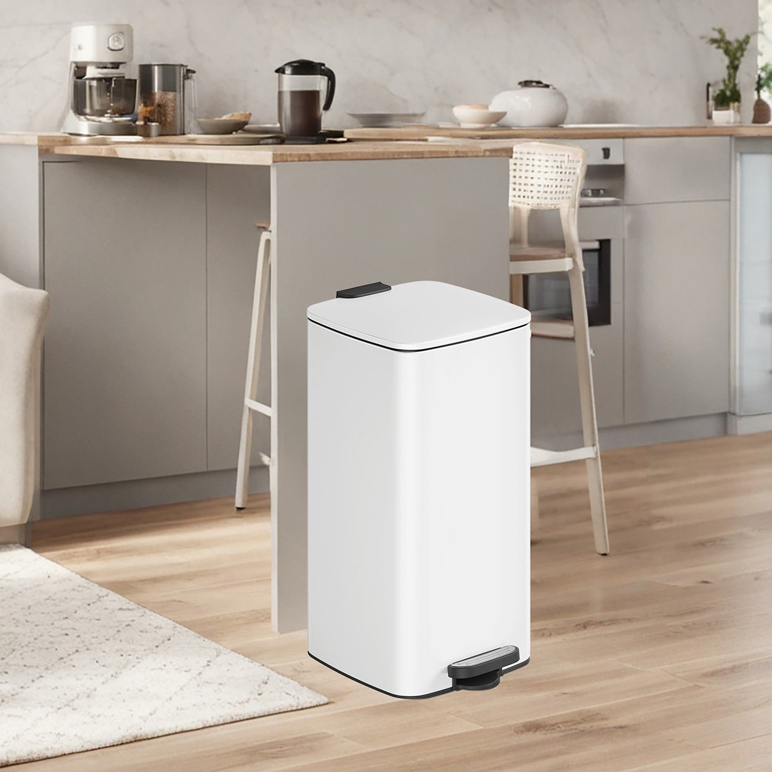 Pedal Waste Bin, 30 L Steel Bin with Inner Bucket, Soft Close, for Kitchen, Stays Open, Black