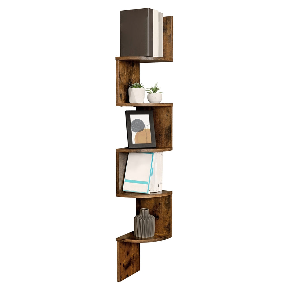 5-Tier Floating Corner Shelf, Wall Mounted Bookshelf