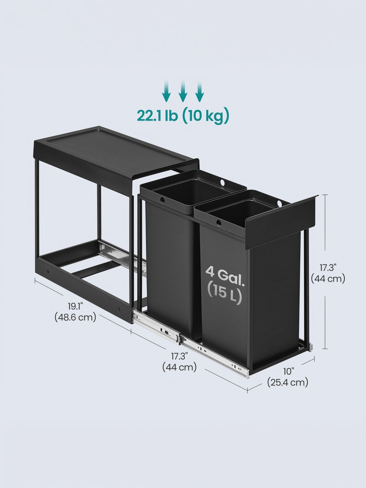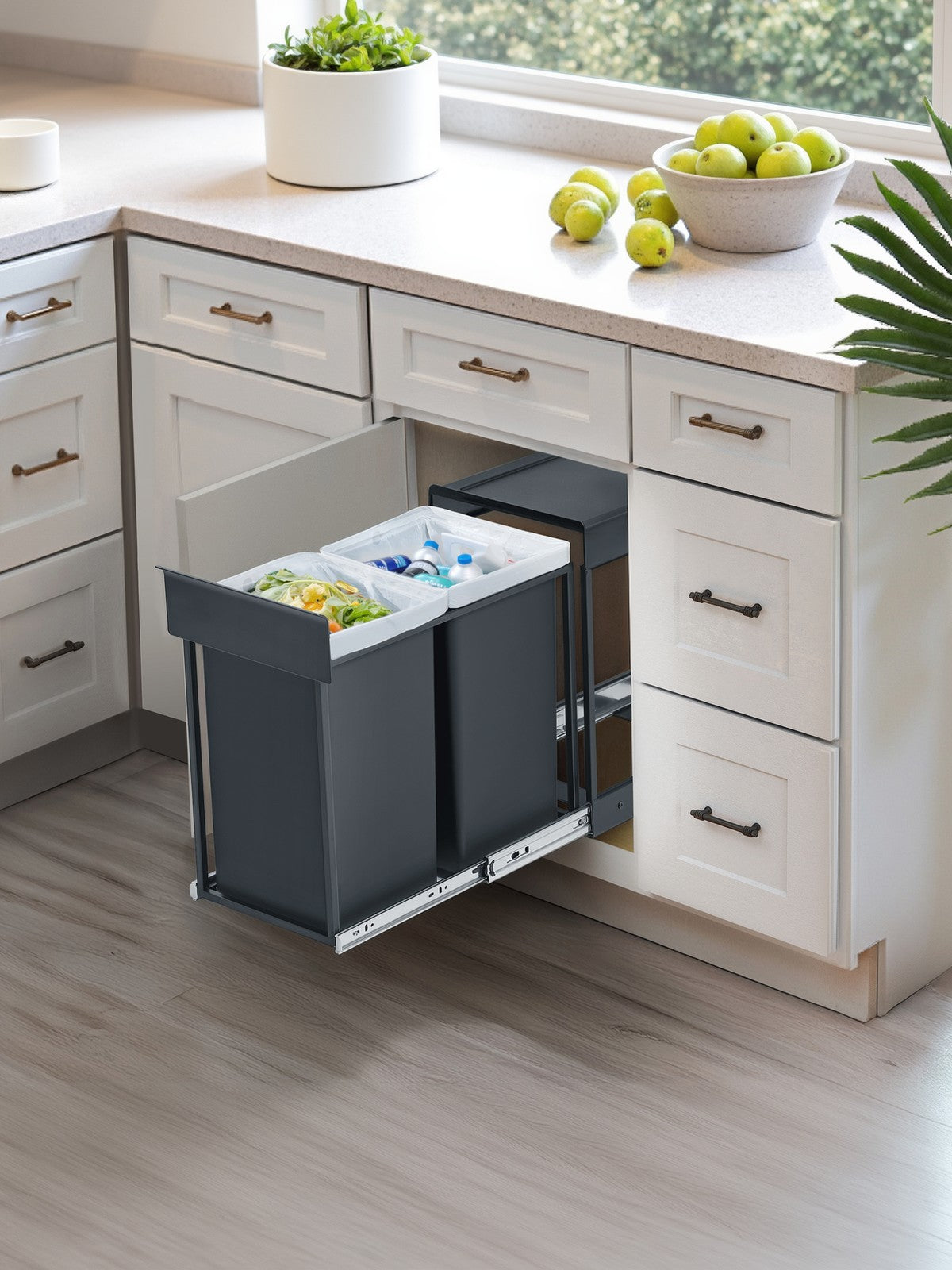 Pull-Out Recycling Bin, Double Compartment Waste Container for Cabinet