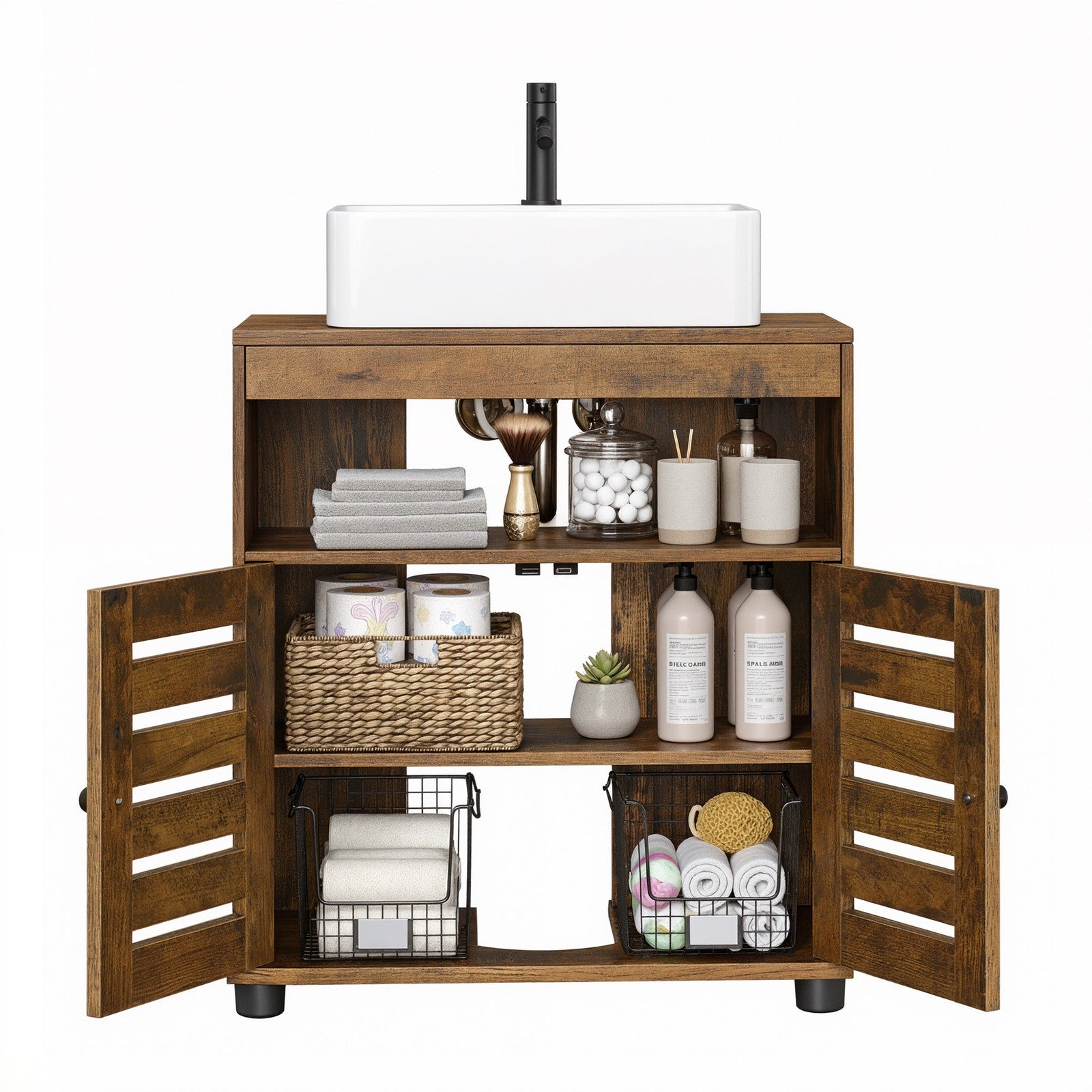 Under Sink Bathroom Storage Cabinet, 2-Door Bathroom Vanity Unit with Adjustable Shelf, Space-Saving, Rustic Brown