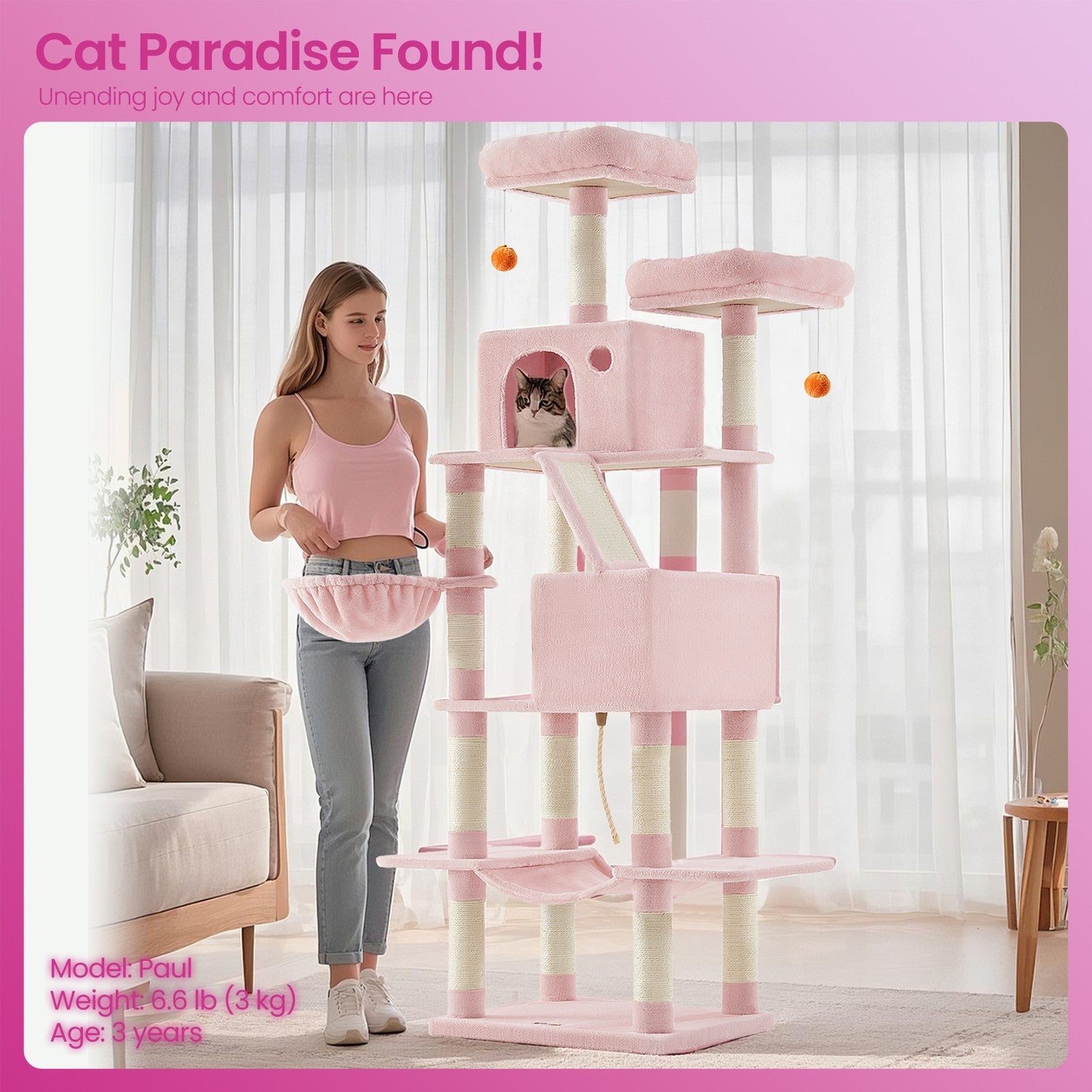 Feandrea Large Cat Tree with 13 Scratching Posts, 2 Perches, Hammock