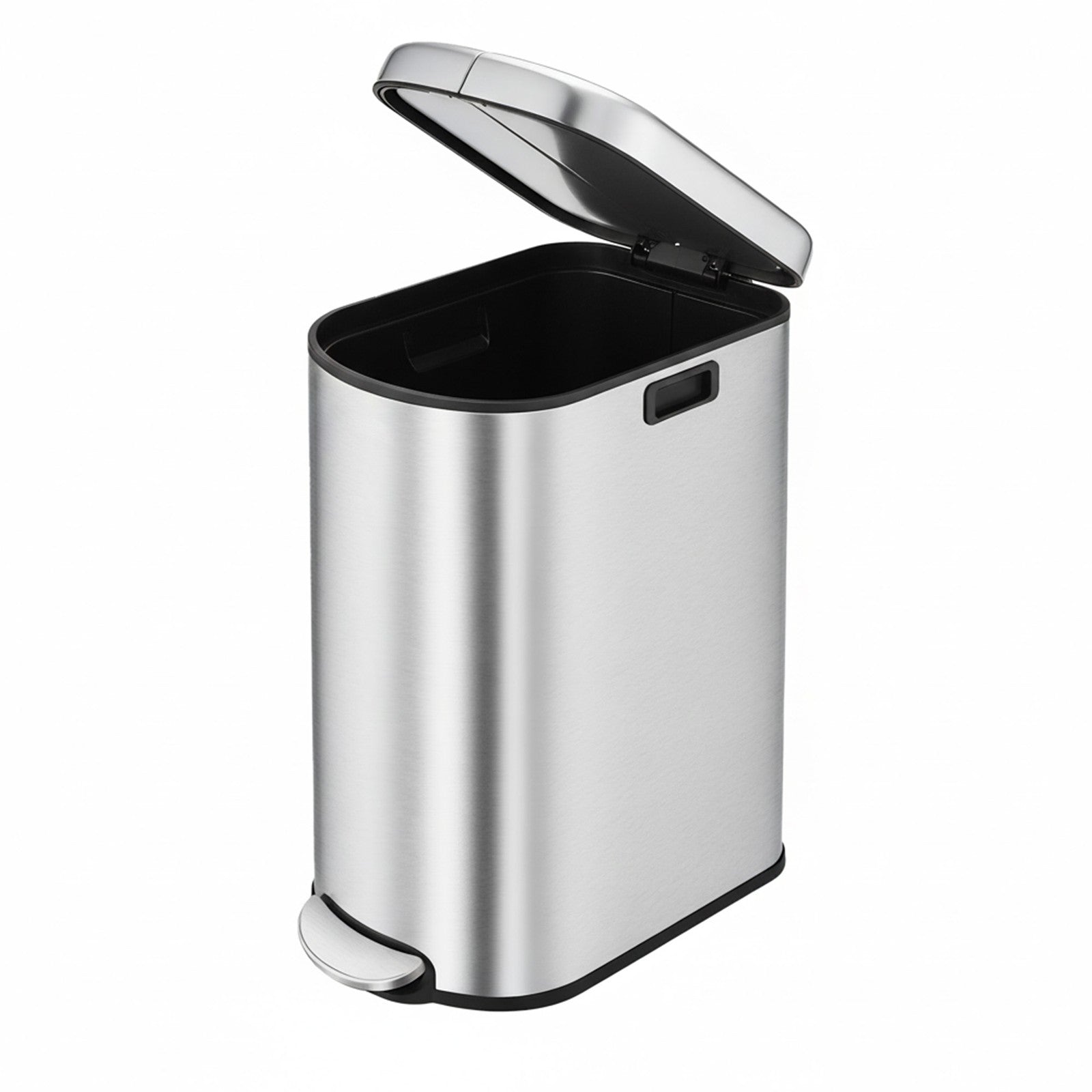 Recycling Pedal Bin, 2-Section Slim Kitchen Waste Bin, Butterfly Lids, White and Silver