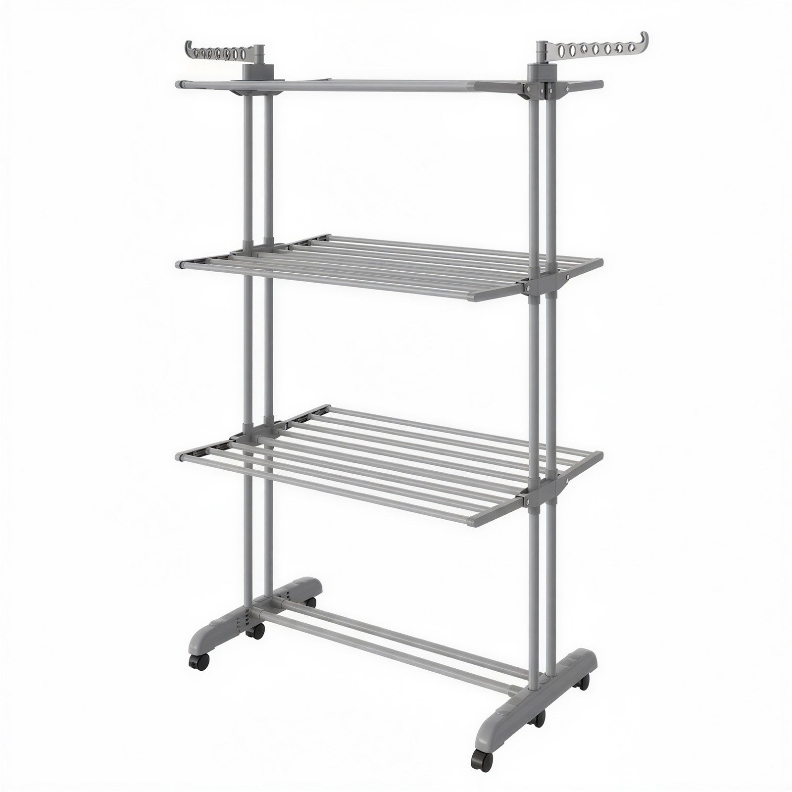 4-Tier Folding Laundry Drying Rack, Stainless Steel Clothes Airer with Foldable Wings, Grey