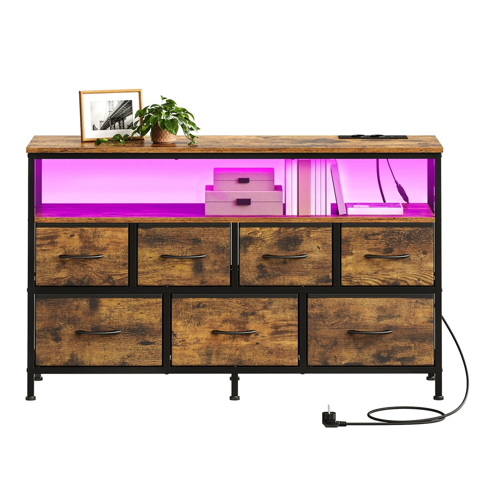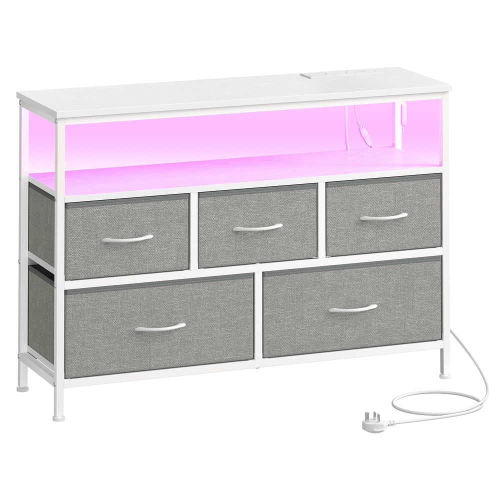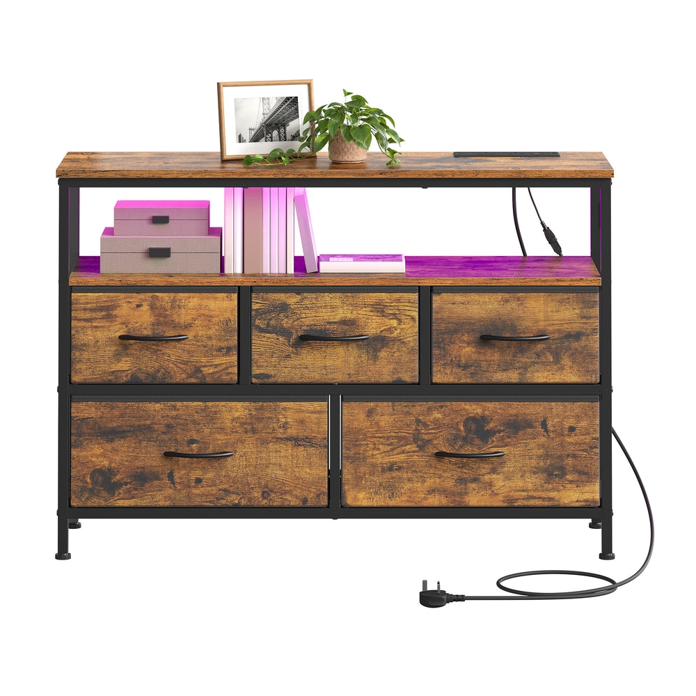 Dresser with LED Lights, 5 Drawers and Charging Station