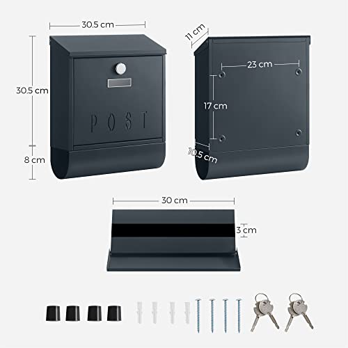 Mailbox, Wall-Mounted Letter Box, Hanging Postbox for Outside, Capped Lock with Copper Core, POST Viewing Window, Newspaper Holder, Nameplate, Easy to Install, Anthracite Grey GMB021G01