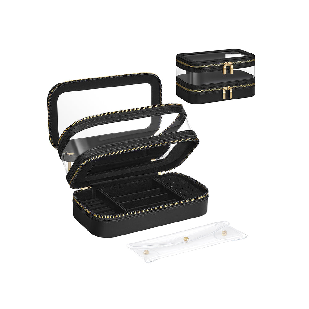 Makeup Bag with Separate Brush Bag Pouch Ink Black