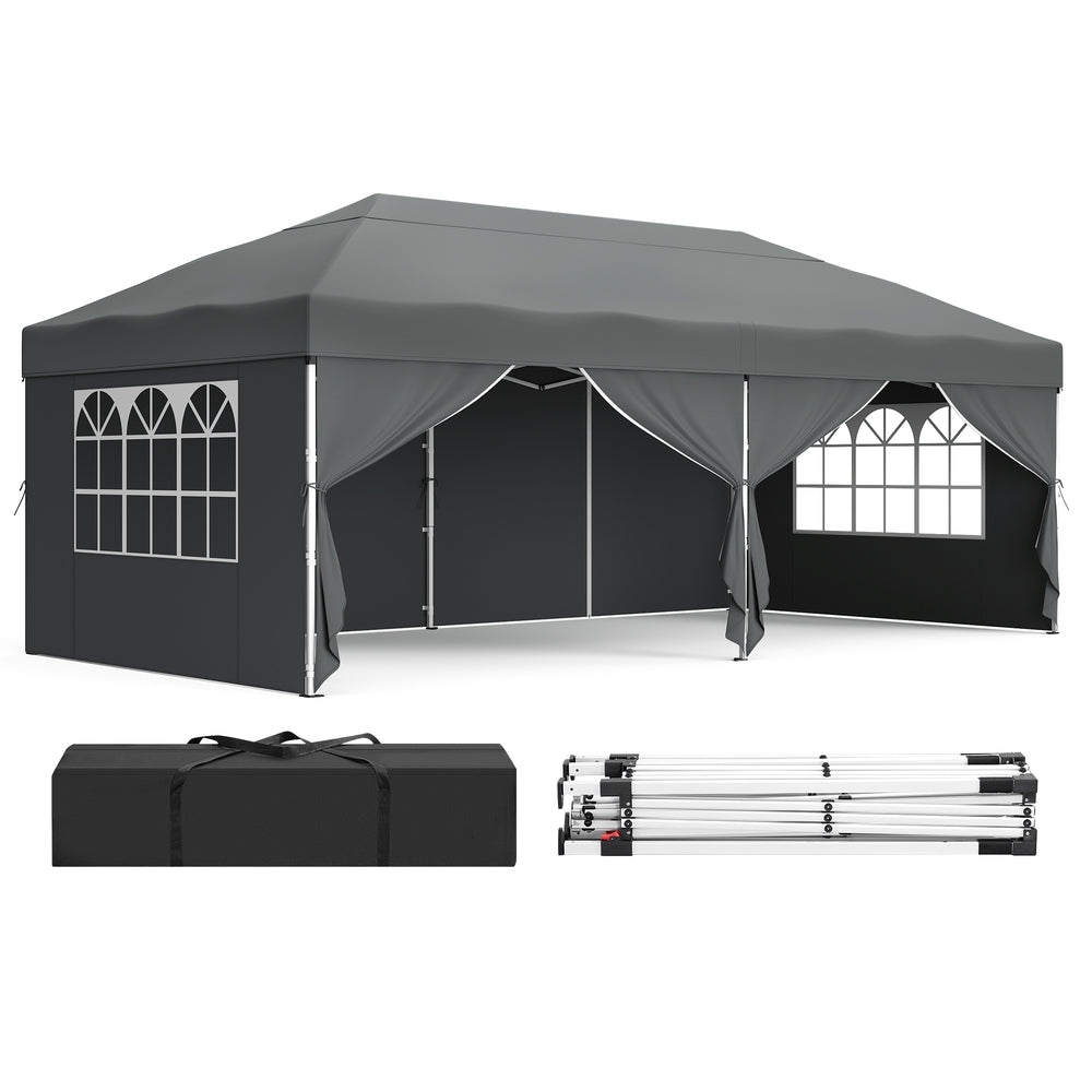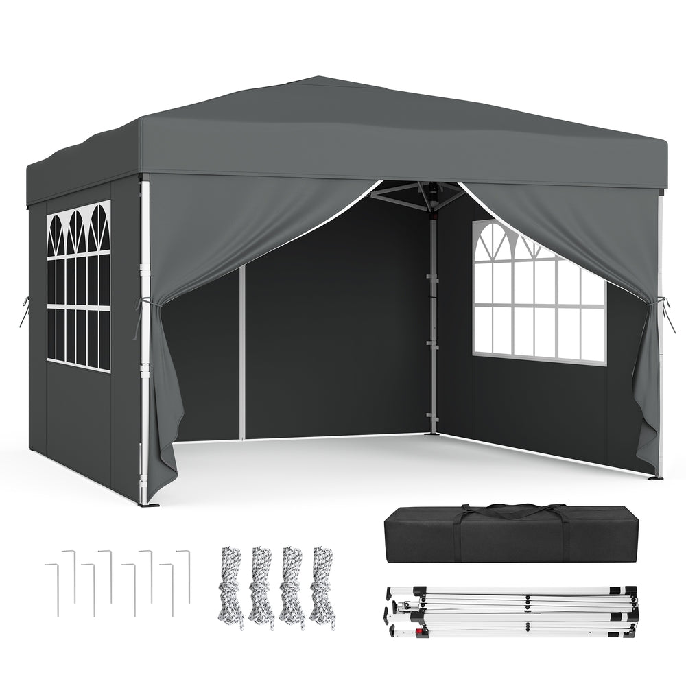 3m x 3m Pop Up Gazebo with Sides for Garden and Patio with UV Protection Dark Grey